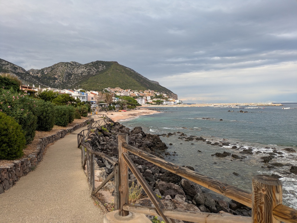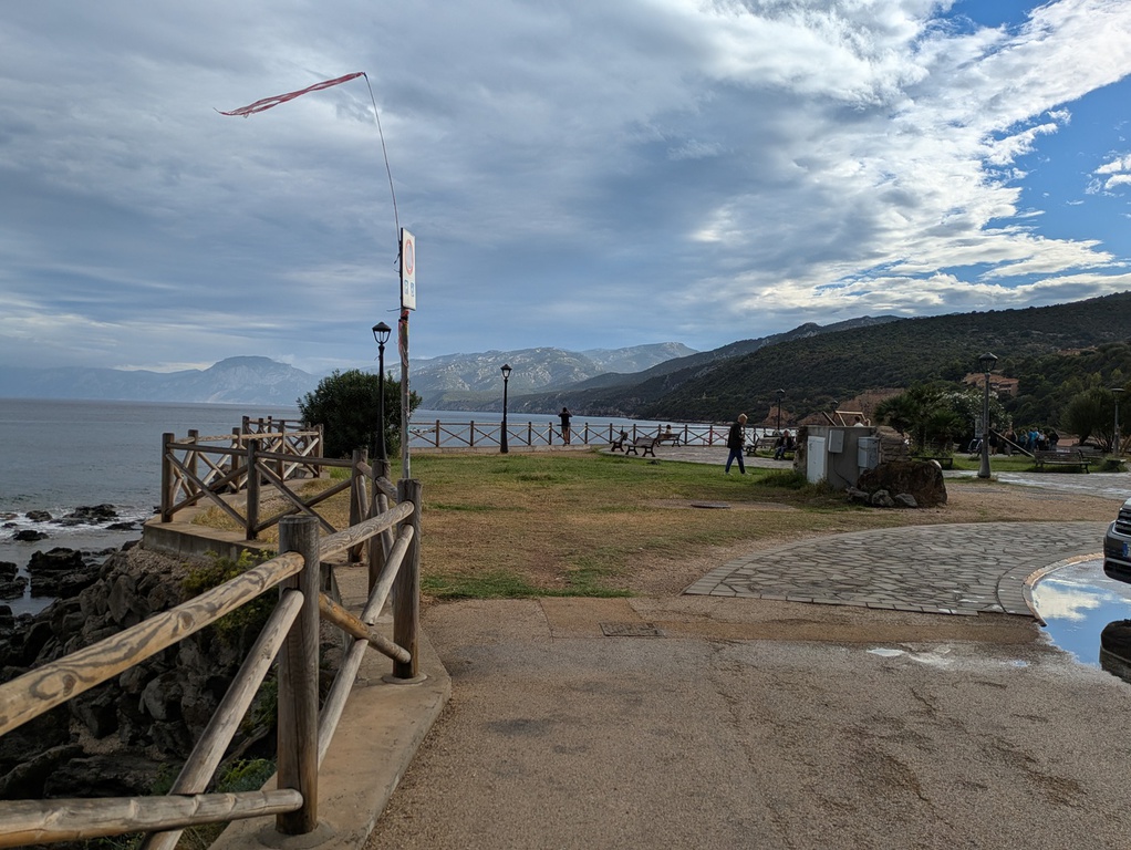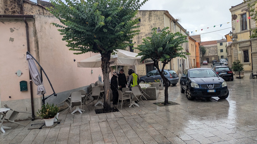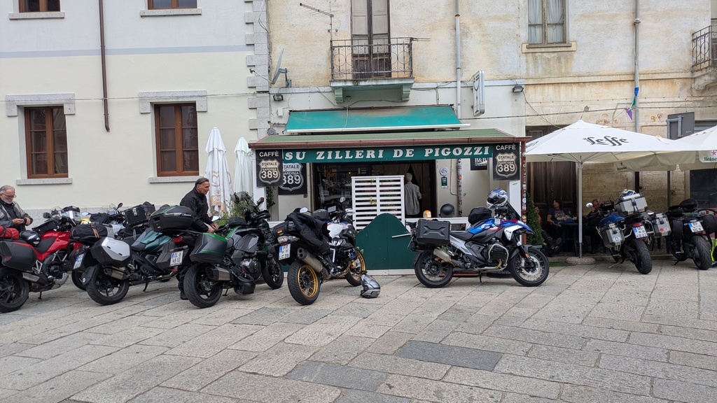 Sehr früh morgens kamen wir in Olbia an. Motorräder fertig gemacht und ab auf die sardische Strada in Richtung Cala Gonone und ab in den Regen. Ein kurzer aber heftige und warmer Gewitterschauer erwischte uns auf der SS127, aber eine Pause in einem sardischen Cafe sorgte dafür, dass während des Aufenthaltes der Regen aufhörte. Über kleinste Nebenstrassen erreichten wir dann schliesslich unser zentrales Hotel Costa Dorada, welches wirklich erste Sahne war.