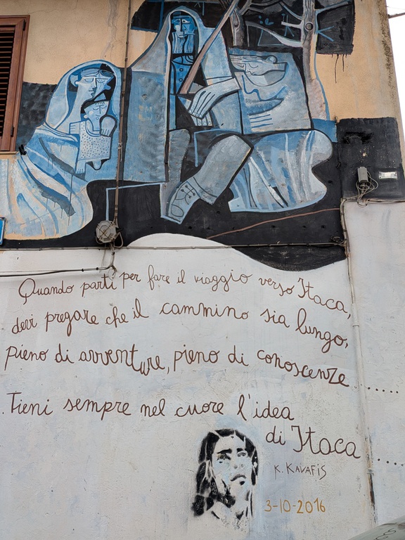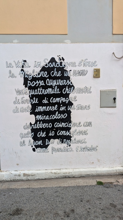 Der heutige Tag führte uns von Cala Gonone über die SS125 - SS37 - SS389 - SS389dir/B - SP3ter - SP2bis - SP48 - SP58 - SS129 - SP 46 zurück nach Cala Gonone. Wir durchquerten kleine Dörfer mit riesigen Gemälden an den Wänden, superschöne Landschaften auf kleinsten Wegen, abseits der Hauptstrassen.